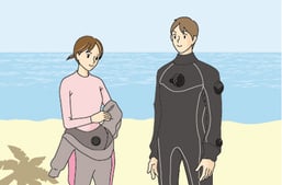 ドライスーツがあれば年間通してダイビングを快適に楽しめます(^^)洋服の上から着る事が出来るので、気温や水温に合わせたインナーをチョイスすれば寒くない♪