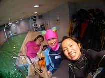 はじめてのダイビングにドキドキ、ワクワクしながら無事プール講習修了!お天気も程よく、楽しい1日でした♪
