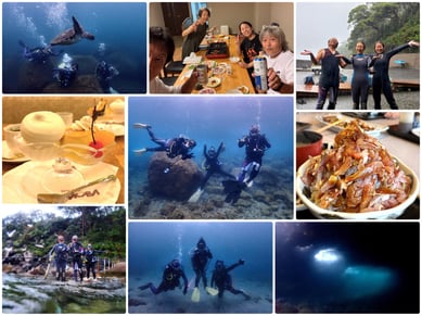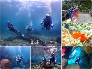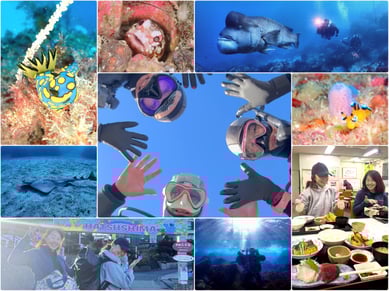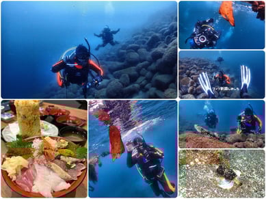 事前にプールでトレーニングして、伊豆の海で2日間お泊まりダイビングツアーです。美味しいご飯や温泉も楽しめて充実の2日間でした。