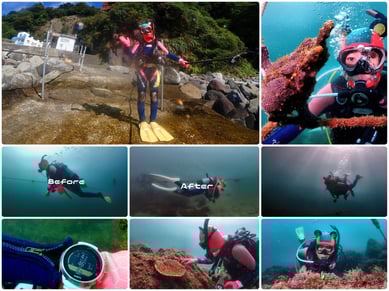 初めてドライスーツを着た感想は、「ドライスーツいいですね。上がってからも楽だし」とのことでした。